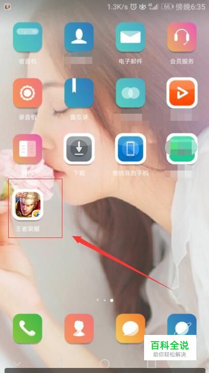 首先,打开我们的手机,接着我们在我们的手机桌面找到王者荣耀APP的图标,我们点击打开,如图所示。