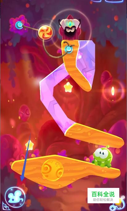然后在国王的技能冷却时间里将棒棒糖左侧的绳子割掉。