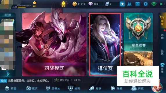 目前玩家可以通过QQ或者微信登录王者荣耀,进入游戏后首先点击“排位赛”模式。