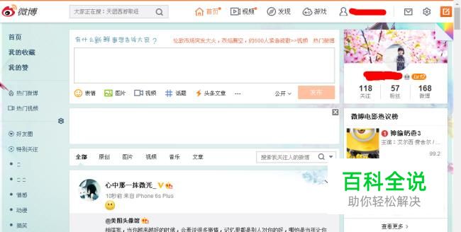 登录到电脑版的新浪微博,点击我的头像进入首页