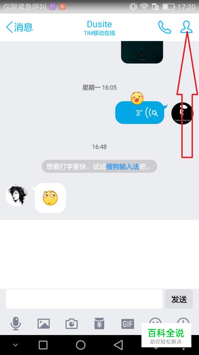 进入与好友的聊天界面,点击右上角的人型图标进入设置界面。