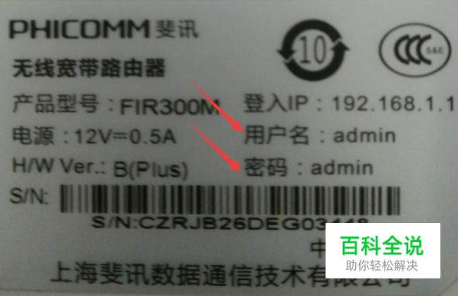 在路由器上找到贴在上面的一张标签,记下用户名和密码(注意此用户名和密码是用于登陆设置路由器的,并非Wifi的用户名和密码)