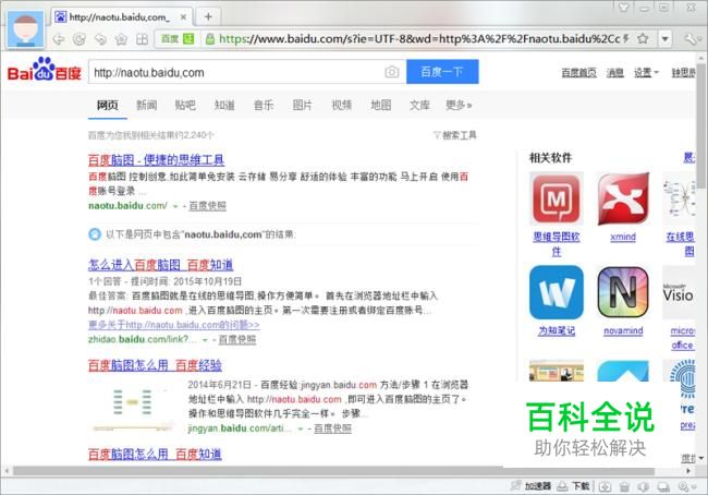 打开电脑中的搜狗浏览器,搜索“百度脑图”