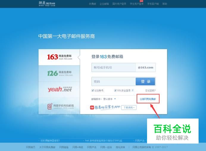 首先浏览器登陆网易主页www.163.com,点击“注册免费邮箱”