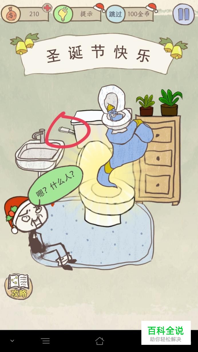 大家都在开圣诞派对,史小坑在睡觉,点击桌子上的【帽子】。