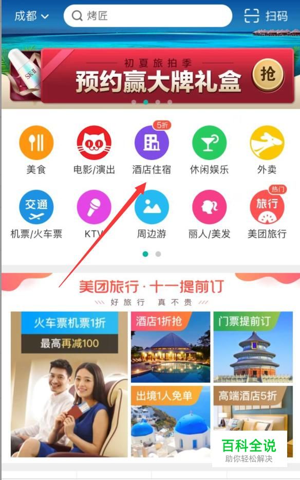 点击“酒店住宿”。