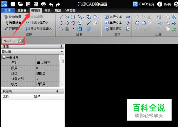 打开CAD编辑器,软件会自建一个dxf格式文件,这里在软件顶部菜单选择“编辑器”选项。