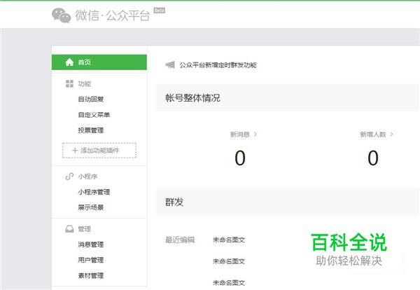 之后我们进入到微信公众号的主界面,需要向下拉,如图所示。