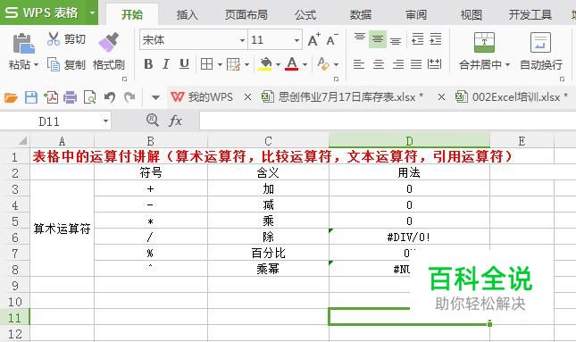 首先打开一张表格,然后先将一个算术运算符进行写出来,运算的无非是我们平常的加减乘除,百分比和乘幂如下图所示