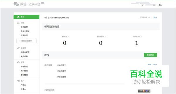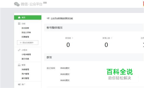 最后我们即可注册成功,登录到微信公众号当中,如图所示。