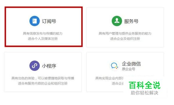 因为是个人注册我们需要选择“订阅号”,如图所示。
