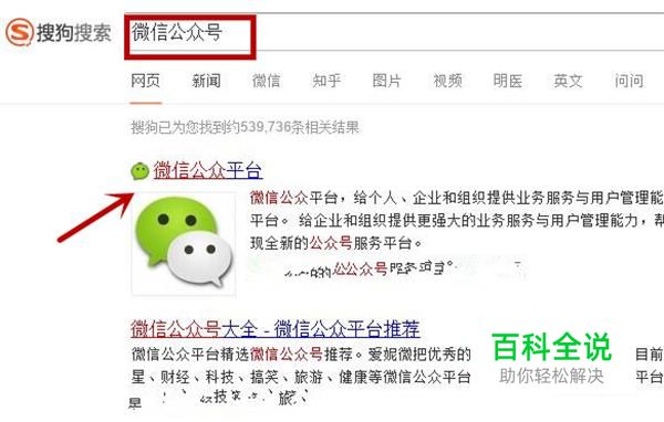 首先我们用浏览器搜索微信公众平台,点击并进入,如图所示。