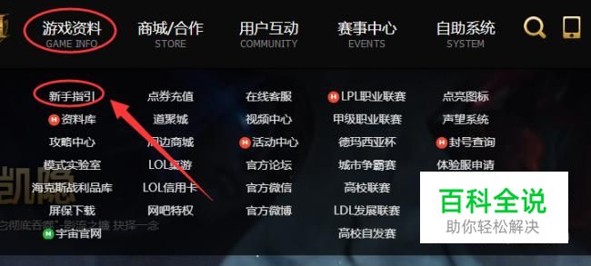 首先进入英雄联盟官网,登录自己的账号,点击“游戏资料”—“新手指引”。