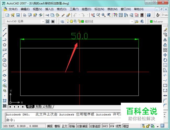 找到合适位置后,点击空格或者回车键确认位置信息,操作完成,标注上数值成功移开中心线,如图所示: