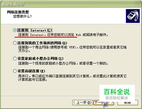 选择连接到Internet,正是我们此次设置的目的,点击下一步。