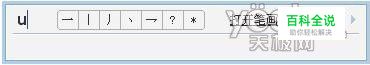 第一种:普通笔画输入 当输入小写字母“u”,进入普通笔画界面,如下: 图为:普通笔画界面 当需要输入的字相对比较简单,可以直接使用u模式笔画输入,如下: 图为:u模式笔画输入 点击 ,可以直接输入笔画。几个笔画输入后,就能很方便的定位汉字,并获知其读音了。 注:“?”及“*”均为通配符,下面将专门说明,这里不再详细描述。