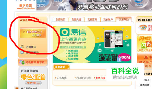 打开闪讯的主页,找到校园网厅的入口并进入。