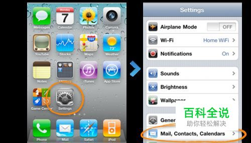 轻点设置图标,然后选择邮件、通讯录、日历。
