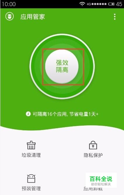 一键隔离,释放内存,节省电量(有root) 使用安狗狗应用管家对手机应用进行隔离看护,提高电池使用时间。隔离后,相比隔离前电池使用时间含有明显变化。通常情况下用户退出正在使用的应用程序后,应用仍在后台偷偷运行,为了提升电池的有效使用,安狗狗应用管家将应用隔离后进行监控和软禁,犹如在手机中被冰冻不能进行电量请求和后台运行,达到为用户节省电量的目的。