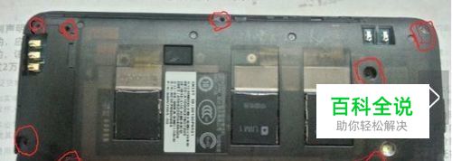 拆开电池盖,把SIM和内存卡取下之后,拆掉红圈中的螺丝!(有其中一个螺丝有防拆标,教大家一个方法:用风筒吹热一下之后,用牙签把防拆标签拿下来,装好之后再贴上就OK了,这样不影响保修了吧,哈哈)