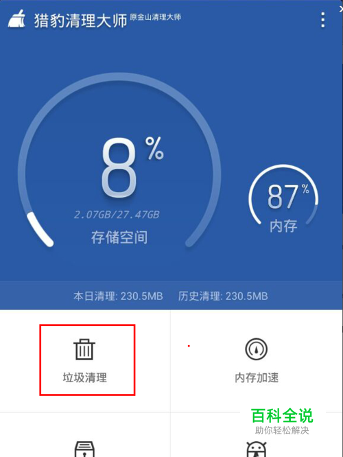 首先要在的手机上下载安装“猎豹清理大师”(可以到官方网站去下载的)