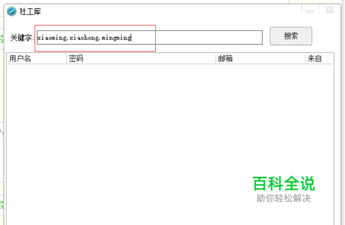 打开查密码界面,在搜索框输入你要查询的账号(可以是QQ、论坛id...)