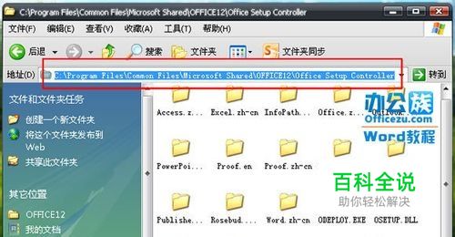 找到Office2007的安装目录,一般情况下是在C盘,打开路径:C:\Program Files\Common Files\Microsoft Shared\OFFICE12\Office Setup Controller;