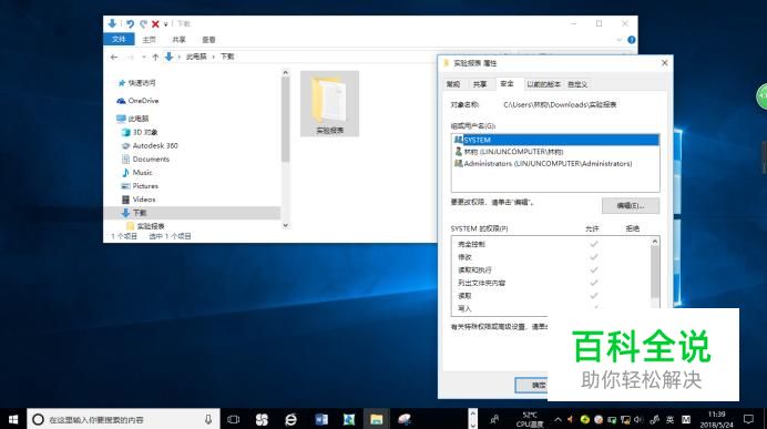 如图所示,展开"资源管理器"左侧树形目录。右击"此电脑→下载→实验报表"文件夹,弹出快捷菜单选择"属性"项。