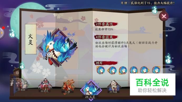 招财猫。招财猫在2号位能够有速度加成,在4号位和6号位有生命加成。招财猫两件套防御加成30%,4件套在回合开始时,有50%的概率获得2点鬼火。