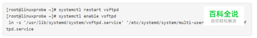 确认参数填写正确后保存并退出vsftpd服务程序的主配置文件,还需要重启vsftpd服务程序来让新的配置服务参数生效,并且同学们在生产环境中或者红帽RHCSA、RHCE、RHCA认证考试中也请记得一定要把配置过的服务程序加入到开机启动项中,以保证下次服务器重启后依然能够为用户正常提供ftp文件传输服务: