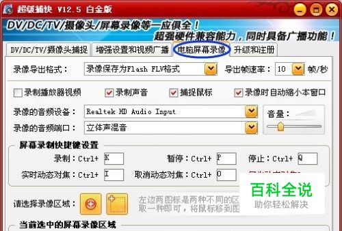 设置录制网页视频的信息 超级捕快支持录制成目前流行的视频格式:AVI、FLV、WMV、SWF等,其中WMV甚至支持到1080P全高清,全面满足追求画质的网友的需要。同时,超级捕快还支持同步录制音频,我们可以录制网页视频本身的声音,甚至还可以通过麦克风录入自己的同步解说声音。当然,很多时候我们都不需要录制整个屏幕,会需要录制屏幕上特定的区域,通过“请选择录像区域”处的工具,可以以手动拖拉的方式灵活选择区域。值得一提的是,超级捕快还有一个特色功能“动态对焦”,运用这一功能可以将鼠标所在区域放大放清晰,这在录制视频教程时非常有用!