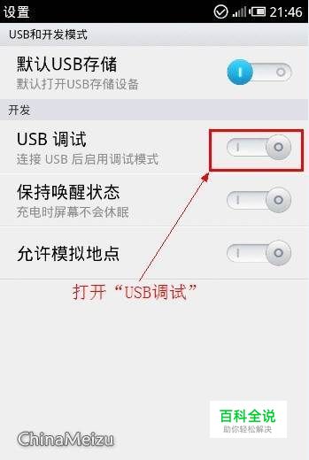 然后请将M9打开,进入设置》USB和开发模式》USB调试【打开】