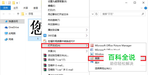 选中你需要合并的第一张图片,然后“右击->打开方式->画图”