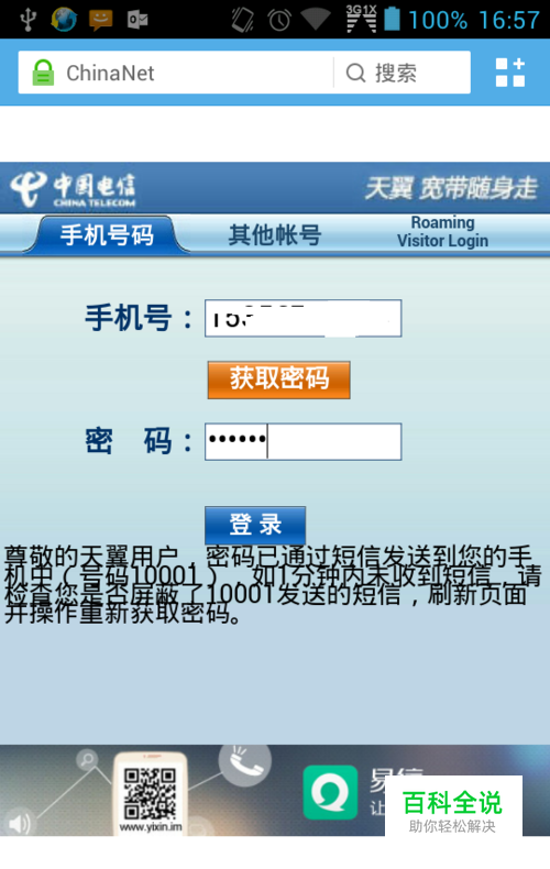 系统会将动态密码以短信形式发送到手机,将密码输入对话框后点击登录