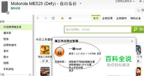 之后会自动打开豌豆荚或者91手机助手,提示安装APK文件软件到手机,如下图: