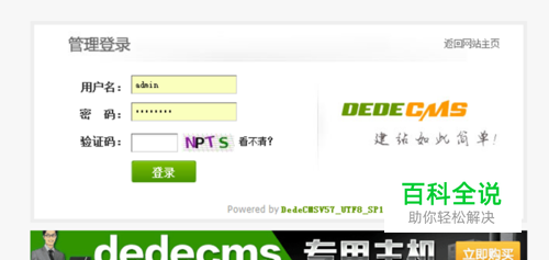 打开你自己的织梦网站后台,输入正确的账号密码,并且登陆到后台