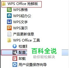 首先,点击开始,所有程序,然后找到WPS OFFICE 软件,点击WPS OFFICE工具,最后点击配置工具。