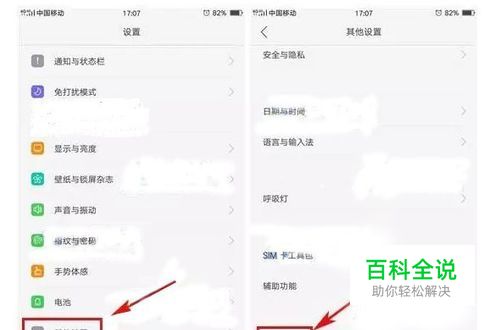 在手机设置菜单里面找到【其他设置】选项并打开,打开后点击【备份与重置】。(如下图)