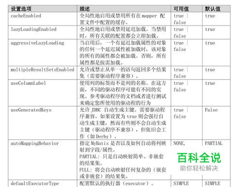 在设置mybatis-config.xml配置文件里面settings信息: <configuration> <settings> <setting name="cacheModelsEnabled" value="true"/> <setting name="lazyLoadingEnabled" value="true"/> <setting name="enhancementEnabled" value="true"/> <setting name="errorTracingEnabled" value="true"/> <setting name="maxSessions" value="500"/> <setting name="maxTransactions" value="200"/> <setting name="maxRequests" value="1024"/> <setting name="useStatementNamespaces" value="true"/> </settings> <environments default="developments"> <environment id="mysql"> <transactionManager type="JDBC"></transactionManager> <dataSource type="POOLED"> <property name="driver" value="com.mysql.jdbc.Driver" /> <property name="url" value="jdbc:mysql://127.0.0.1:3306/test" /> <property name="username" value="root" /> <property name="password" value="root" /> </dataSource> </environment> </environments> <mappers> <mapper resource="com/test/domain/userinfo.xml" /> </mappers> </configuration>