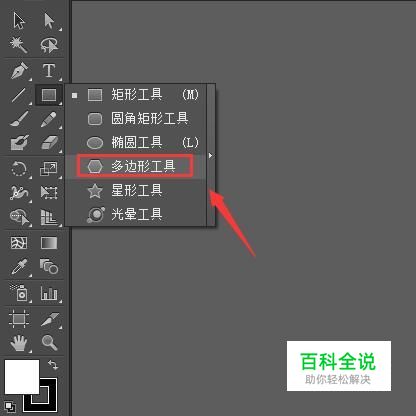点击矩形选项在其下拉菜单那里找到多边形选项,如图所示: