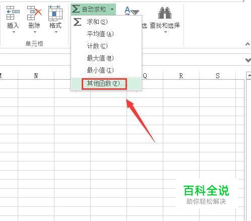 点击自动求和选项在其下拉列表里找到其他函数选项,如图所示: