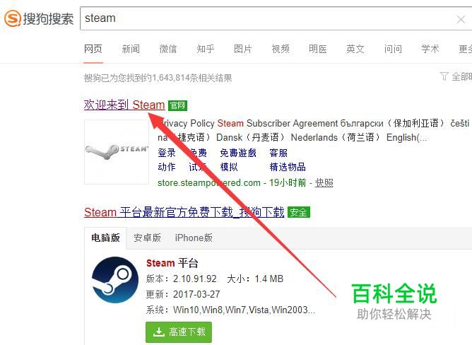 进入之后,搜索“steam”,点击并进入,如图所示。