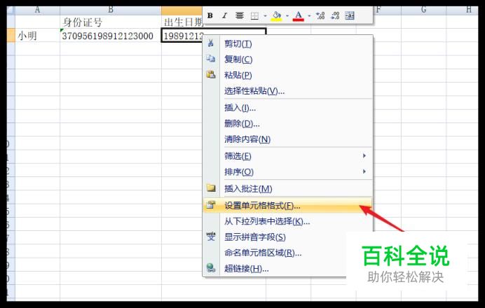 如果需要改变出生日期的格式,右击该单元格,点击“设置单元格格式”。
