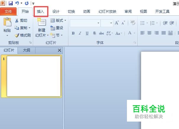 首先,我们打开我们的电脑,然后我们打开我们电脑上面的ppt,之后我们点击插入;