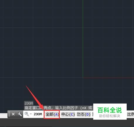 输入zoom命令之后按下回车在提示的信息里我们选择全部A选项,如图所示