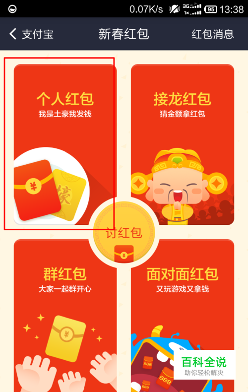 进入新春红包页面之后,选择个人红包,进入个人红包页面。
