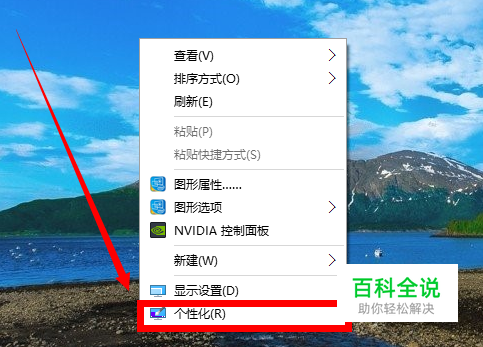 在桌面鼠标右击选择 【个性化】,如图所示。