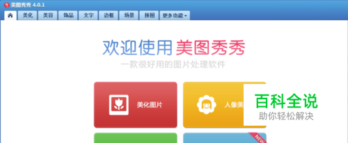打开美图秀秀这款软件,进入美图秀秀的操作界面,如图所示: