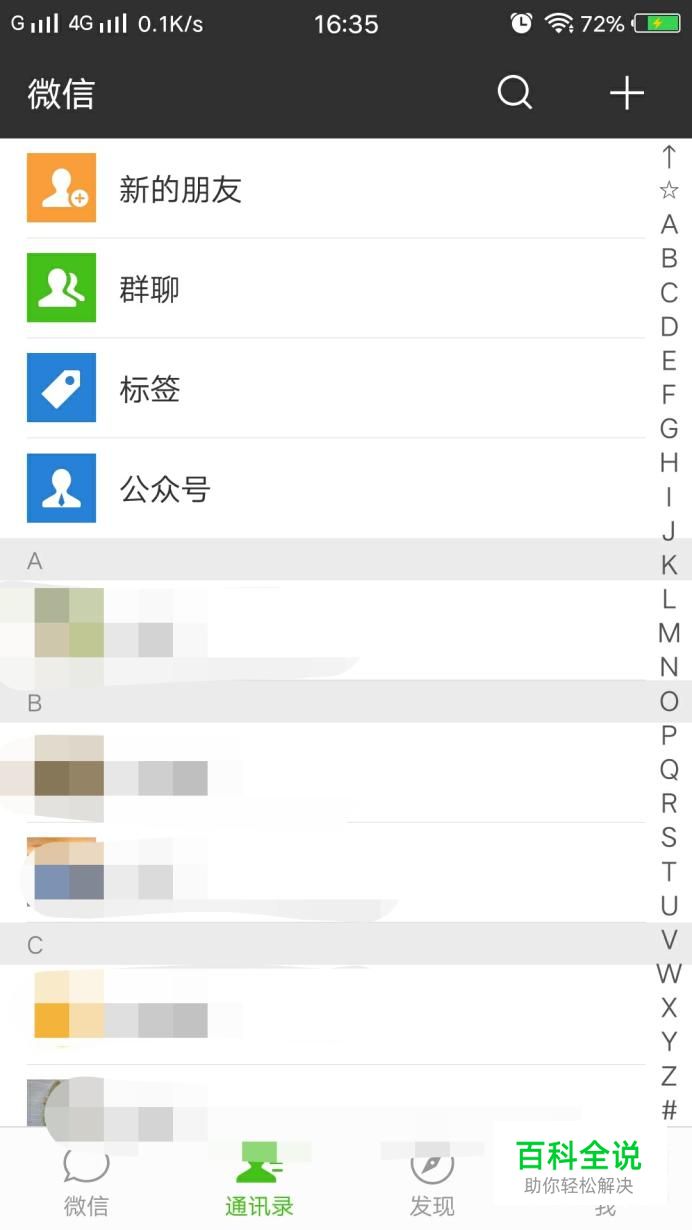 打开微信后,点击下方的通讯录,进入到微信的通讯录界面,可以看到你的好友列表以及群聊、公众号等。