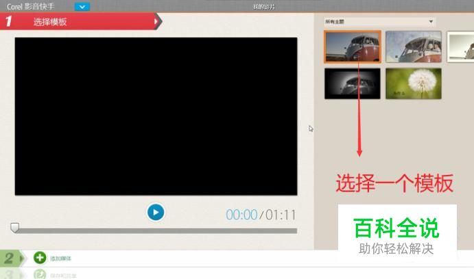 首先打开影音快手软件,在右侧的模板列表中选择一个模板,如下图所示